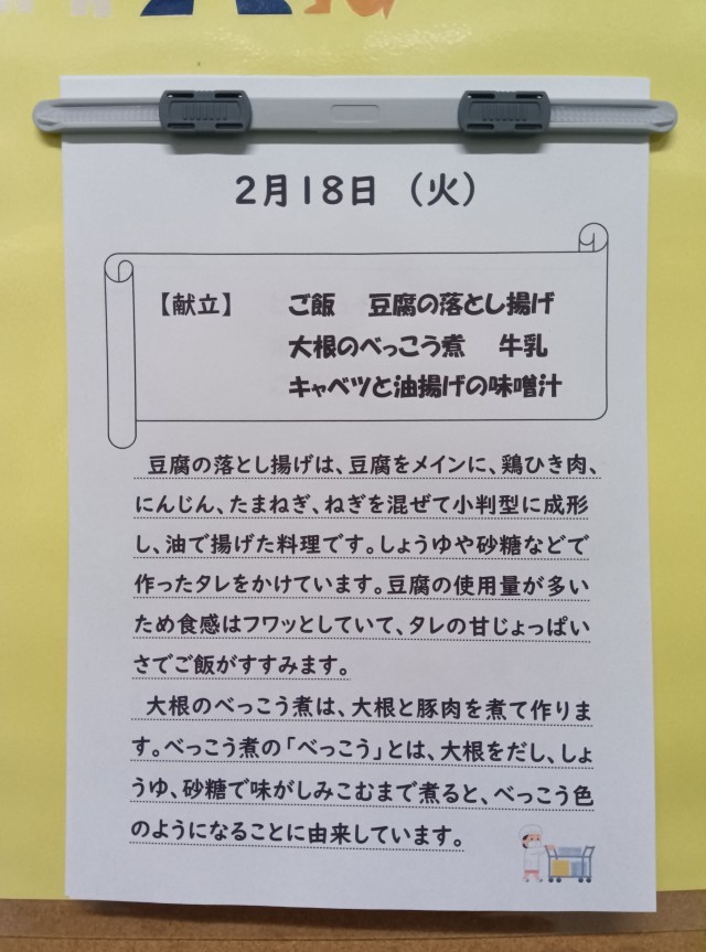 今日も調理員さん、ごちそうさまでした。(副校長)