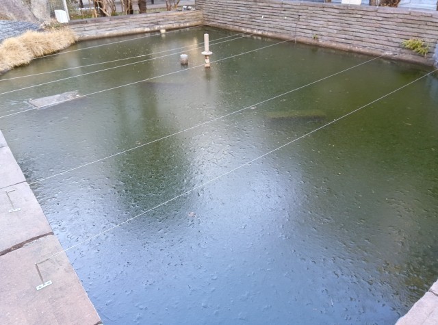 池に氷が張っています。