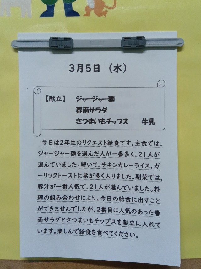今日も調理員さん、ごちそうさまでした。(副校長)