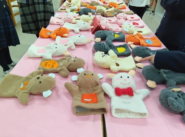 3年生 おはなし指人形 同じ材料でも一人ひとりの個性がでますね。(副校長)