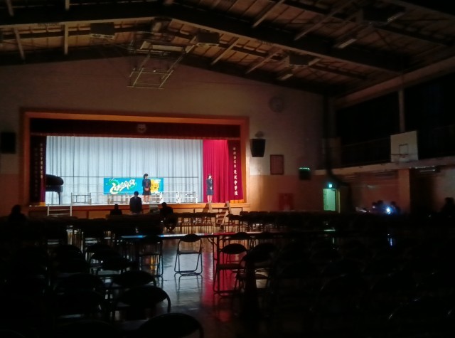 写真は、昨日実行委員の担当者が最後のリハーサルを行っていた様子です。委員の皆さんの影の努力で本日が迎えられます。本当にありがとうございます。舞台上のスローガンも委員の力作です。どうぞご期待ください。