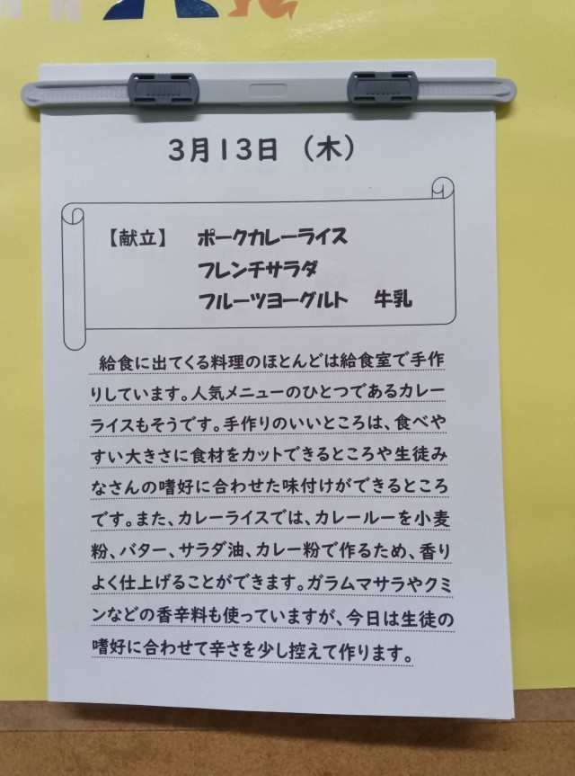 ポークカレーライスは、スパイシーでじゃがいもがとろける美味しさです。