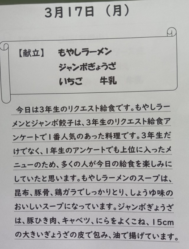 今日も調理員さん、ごちそうさまでした。(副校長)