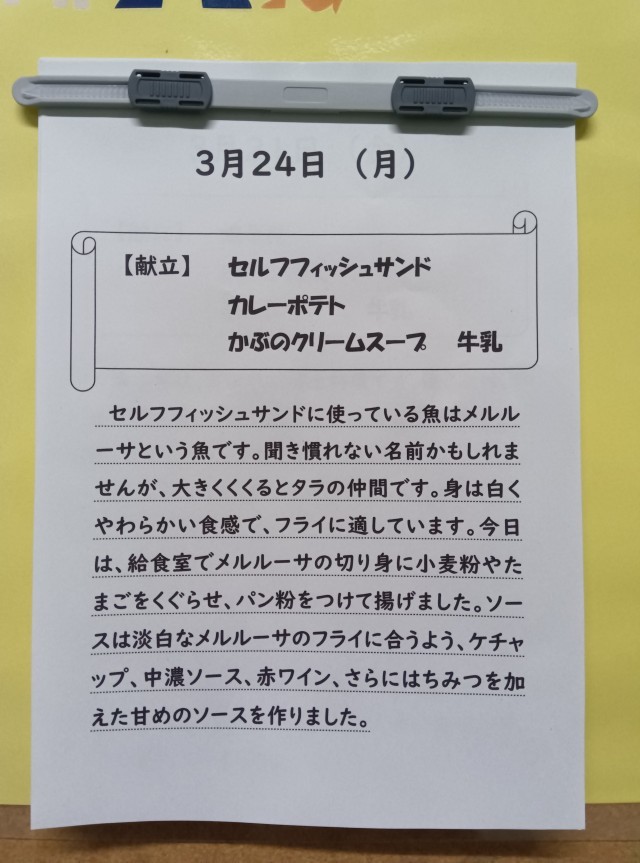 1年間、安心安全でおいしい給食をありがとうございました。(副校長)