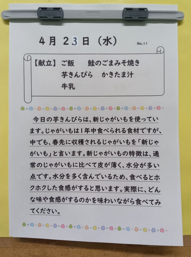 今日も調理員さん、ごちそうさまでした。(副校長)