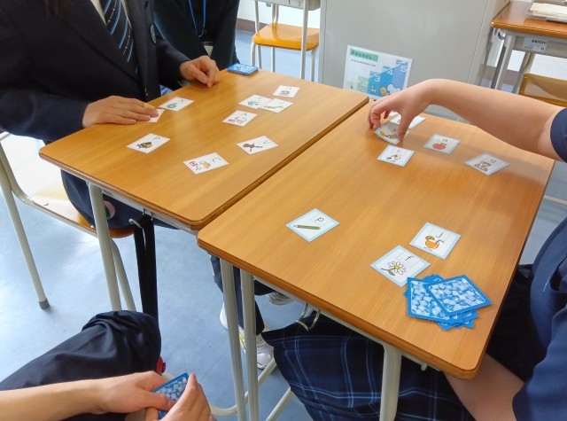 アルファベットの大文字、小文字のカードを早く取るゲームです。