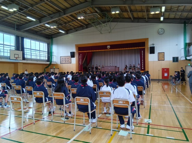 より良い学校づくりのために真剣に参加しましょう。と生徒会役員から話がありました。(副校長)