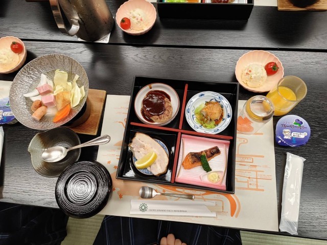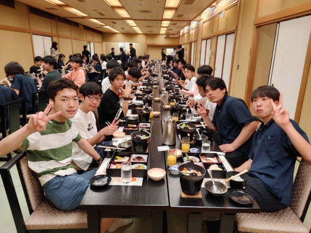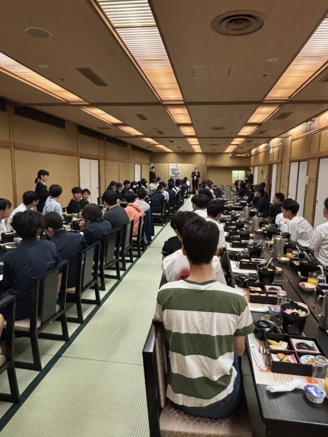 お待ちかねの夕食が始まりました。このホテルでは大広間でみんなで食べます。