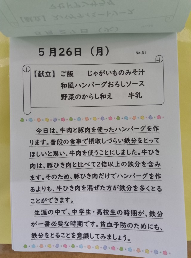 今日も調理員さん、ごちそうさまでした。(副校長)