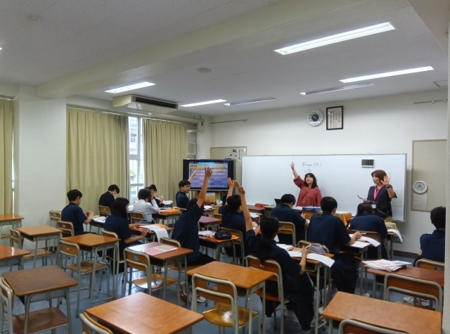 ビンゴで楽しみながら単語を学びます。(副校長)