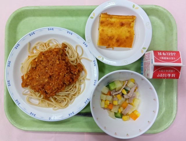 スパゲッティミートソースは、大豆のみじん切りが入ってたんぱく質もたっぷり、美味しいミートソースです。