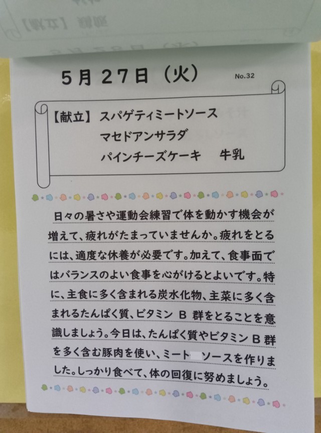 今日も調理員さん、ごちそうさまでした。(副校長)