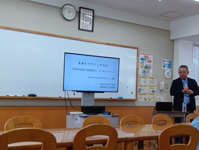 指導教諭の先生を講師にお迎えし、保護者の方々にお話いただいています。(副校長)