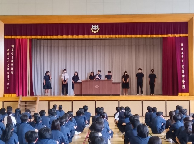 時間通りに生徒朝会が始まりました。
