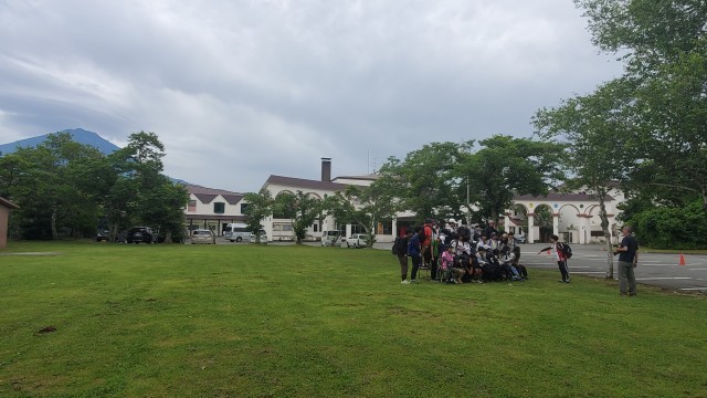 富士山が綺麗に見えるので、集合写真を撮ります。