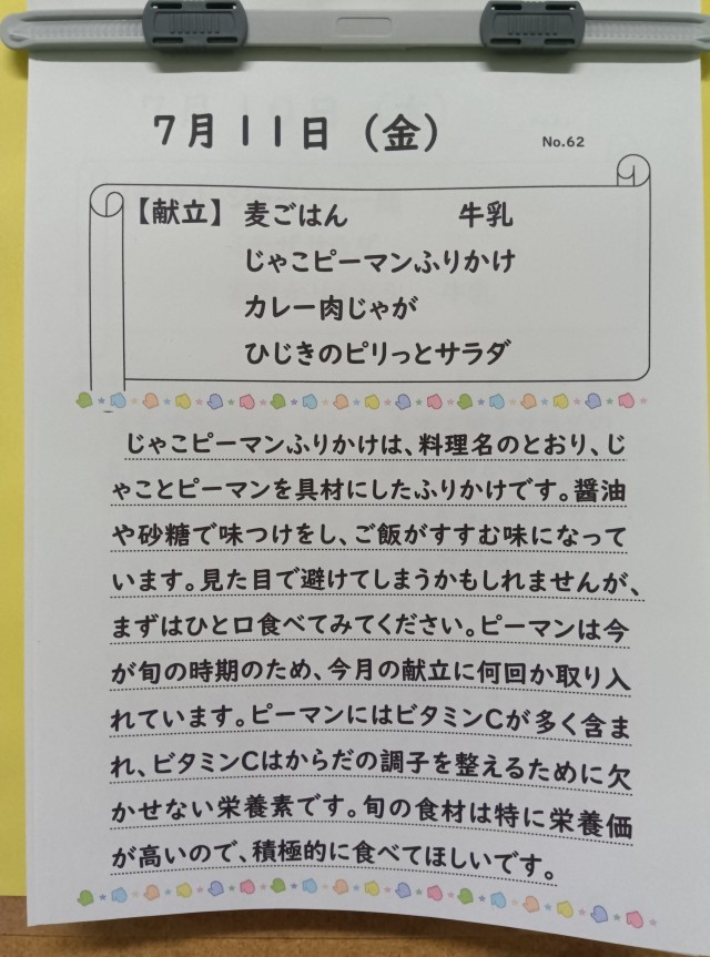 今日も調理員さん、ごちそうさまでした。(副校長)