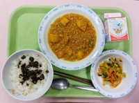 押麦入りのご飯に韓国風海苔ふりかけをかけていただきます。ご飯がすすむ美味しさです...