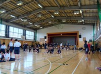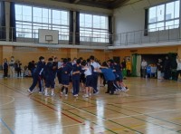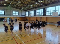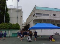 1年生のチームワークもいいですね。最後は円陣これは北沢中学校の伝統ですね。(副校...