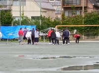 強い雨のため、校庭は、ご覧の通りです。雨が止んだとしても、安全に走る競技を実施す...