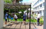 昼食場所が賑わっていますね。 バドミントン部の練習後のようです。 このあと、勉強...