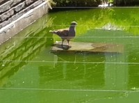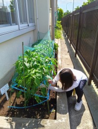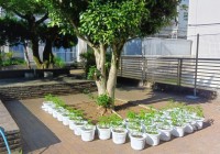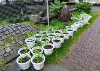 2年生 技術唐辛子の栽培池の畔に置いていた鉢植え周りの雑草の影響が心配されました...
