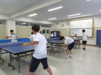 今日は卓球部が実践形式で練習をしていました。シングルスの実際の試合を想定した動き...