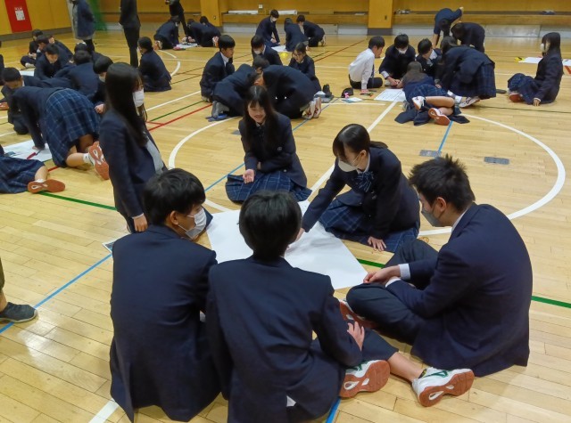 班ごとに話し合いをしています。途中、ミッションが課せられました。通信不能になりました!さてどうする?