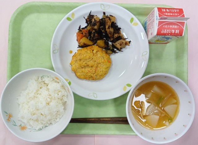 今日は和食です。野菜入り鶏つくねは、鶏むねひき肉に大豆、ごぼう、人参、長ねぎとつなぎの豆腐が入っています。ヘルシーでボリュームもあります。甘辛のタレがかかっています。ひじきと根菜の土佐煮は、ひじき、れ...