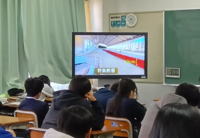 1年生 理科地震に備えるために授業のはじめに、昨晩の地震の情報に触れています。ちょうど学習しているときなので関心が高まりますね。(副校長)