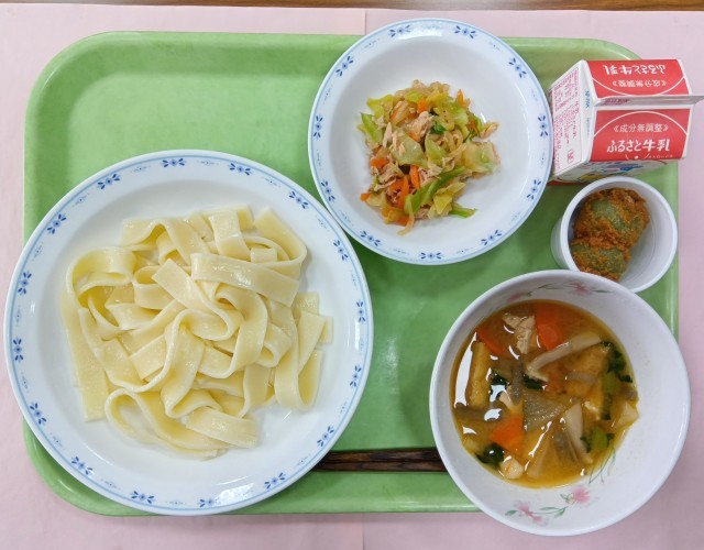 ほうとうは、美味しい製麺所の麺を使っています。別添の汁は、具沢山です。ツナサラダは、下茹でした野菜を手づくり醤油ドレッシングで和えてツナをのせています。明日葉団子は、緑色があざやかです。一口で食べると...