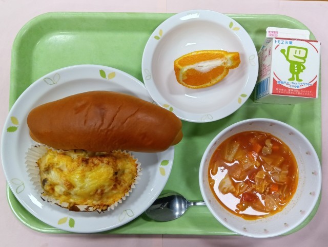 今日はパンです。黒糖パンは、ほんのり甘くて美味しいです。ポテトとブロッコリーのグラタンはコクがあってホクホクのじゃがいもとブロッコリーに合います。ミネストローネは、水煮トマトとキャベツ、玉ねぎ、人参と...