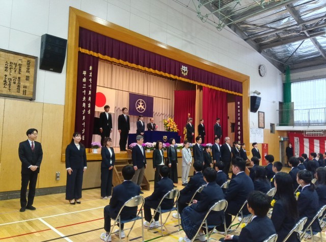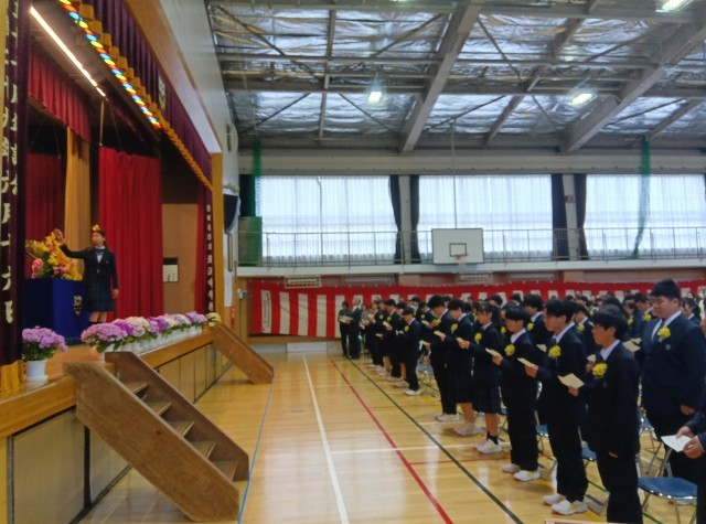 新入生が入場しました。盛大な拍手で迎えられました。