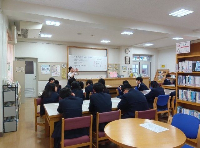 1年生 図書館オリエンテーション学校図書館の使い方本の分類について本を借りてみよう図書館は読書や調べ物、借りるだけでなく、ほっとできる場所なのですね。(副校長)