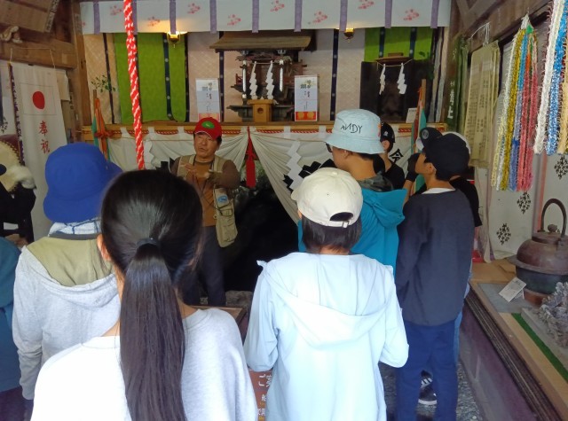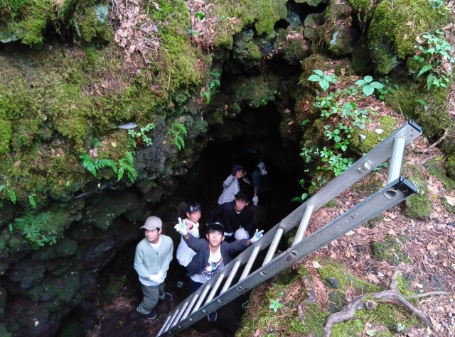 フィールドセンターでは、ガイドウォークにも参加しました。富士山の自然林の中を自然解説員の方のお話を聞きながら、歩きました。船津胎内神社も見学し、貴重な体験をすることができました。