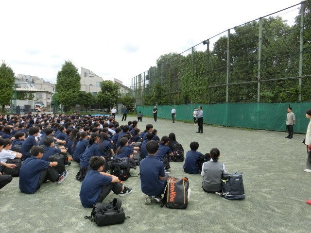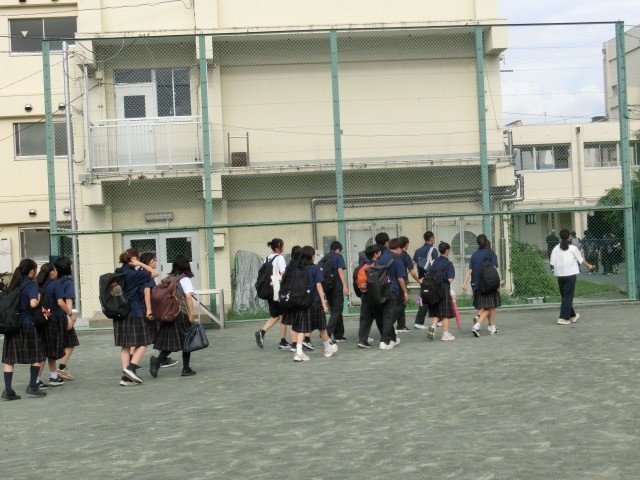 大地震警戒宣言が発令された想定で地域班の集団下校訓練が行いました。近所の生徒同士で班を組んで下校しました。