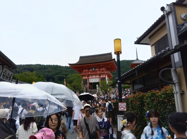 京都は小雨が降っていますが、観光客で賑わっておりかなり混雑しています。