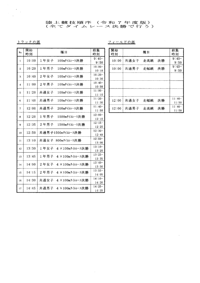 【区陸上】タイムスケジュール