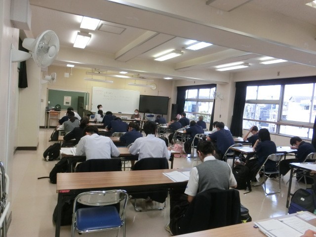 英検は準会場として、学校で行うことができ割引されています。皆真剣に受検しています。