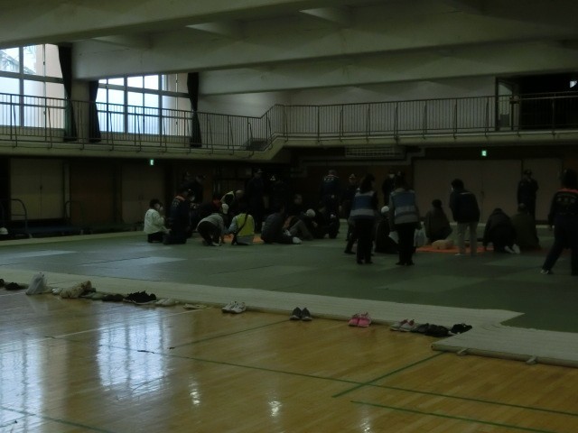 26日午後に地域の防災訓練が格技室で行われました。