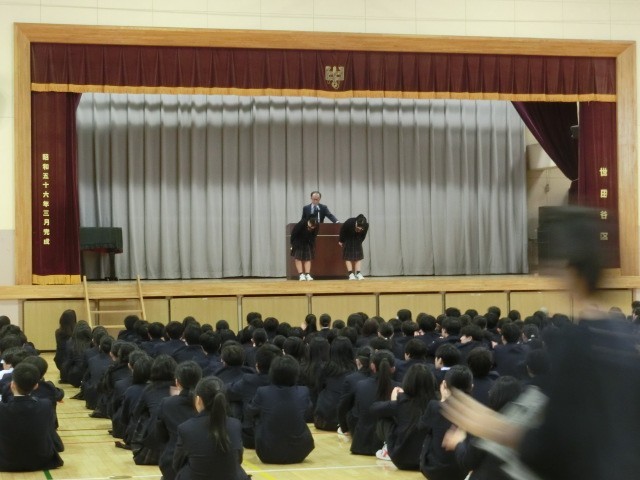 本日の全校朝会はイグノーベル賞についての校長先生のお話、美化コンクールの話、バドミントン部の表彰、ipad使用についてのお話、生活指導主任の先生のお話でした。