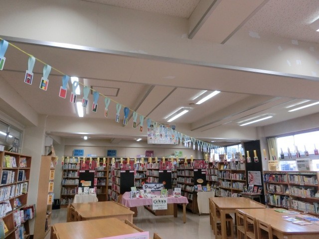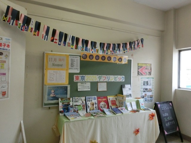 デフリンピック、冬季オリンピックにちなんで11月図書室は国旗で装飾しています。