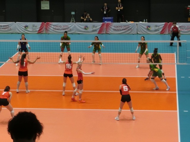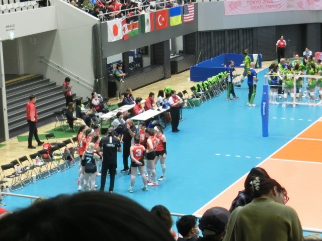 2年生は18日午後駒沢体育館でデフリンピックのバレーボールの大会を観戦しました。カナダVSブラジルの女子とトルコVSブラジル男子の試合です。女子はブラジルがストレート勝ちでした。試合終了後記念写真を両チームで行っており、国際大会の素晴らしさをまじかに見ることができました。8枚目は男子の試合開始前の国歌演奏の場面です。