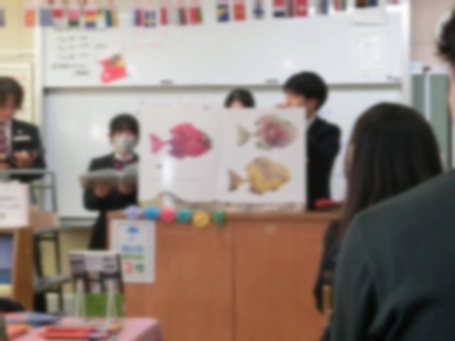 今週は全3回で多言語読み聞かせを行います。第1回目は3年生で「スイミー」を英語と日本語で行いました。明日は5か国語で行います。楽しみにしてください。