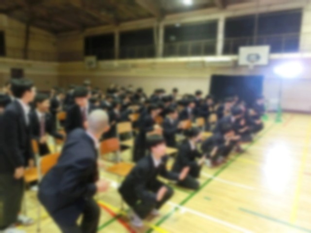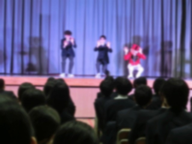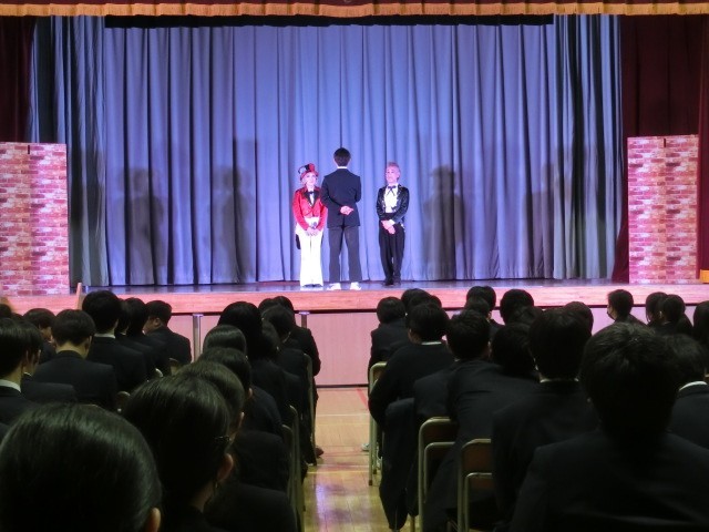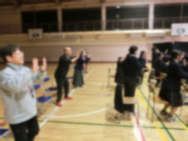 最後に皆でパントマイムの練習をしました。テーマは「壁」です。下に行ったり、横に行ったりしても壁があり・・という演技を練習し、生徒代表2名が舞台で披露しました。劇団 笑太夢マジックの皆さんありがとうございました