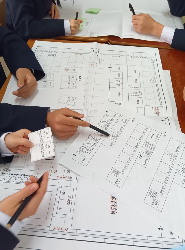 1年生の1.2時間目の様子です。写真には実際に生徒が考えた内容の一部を掲載しています。