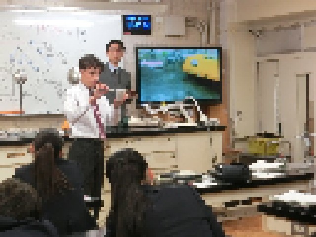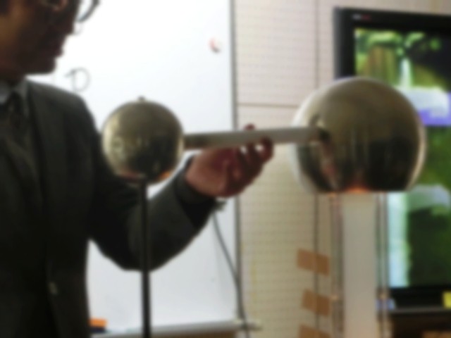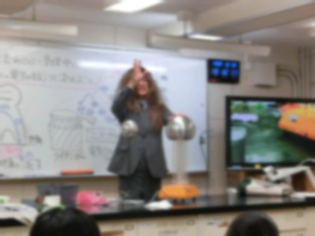 2学期最後の理科の授業は静電気の様々な実験です。バンデグラフの実験器や猫の毛皮、アルミニウム箔等、生徒達は様々な実験を通して電子の流れを体感していました。3枚目の写真は蛍光管が薄く発光しています。