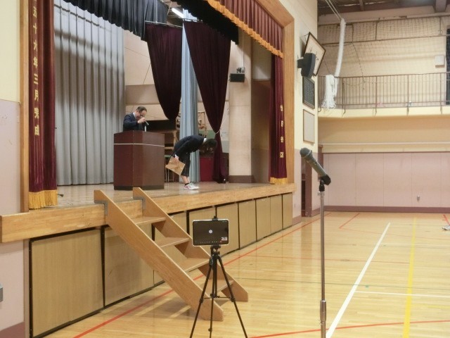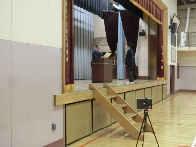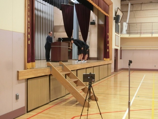 3時間目に終業式を行いました。写真は税の標語・バドミントン部・SPCの写真コンクール表彰です。