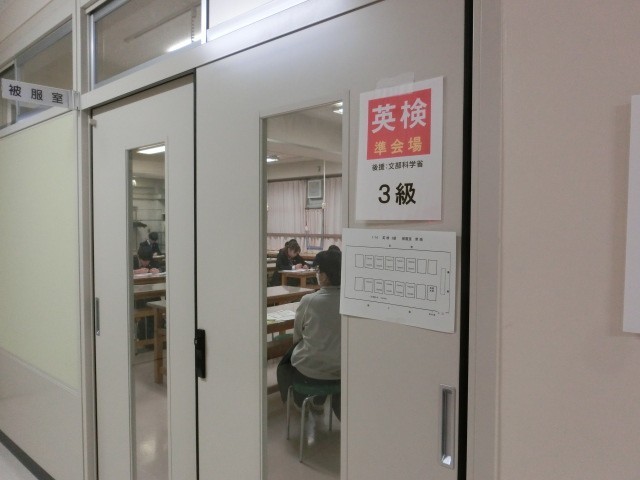 4時より英語検定が行われました。本校は準会場で2級はスタディルーム、4級は多目的室、3級は被服室、準2級は図書室で行われました。検定監督業務は地域支援本部、地域のボランティアの皆様のご協力で行われています。