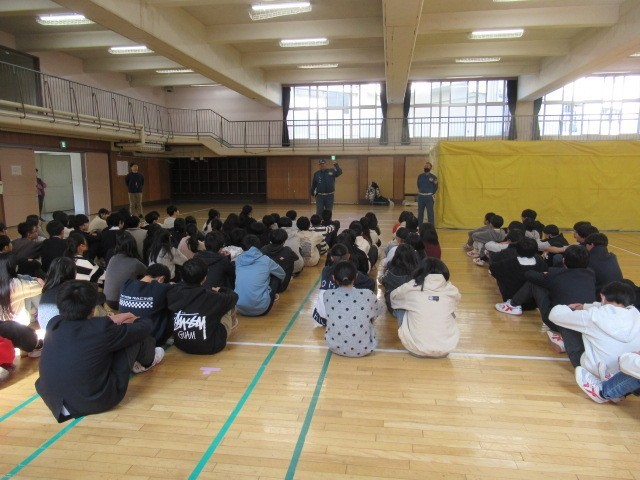 5時間目に避難訓練で煙中体験を行いました。