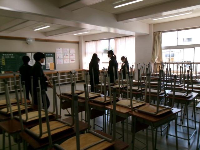 1,2年生が3年生の教室も掃除しました。廊下・窓は業者の方が清掃してくださっています。春休みに学校主事さんが教室のワックスがけをしてくださいます。進級する、4月からもきれいに使いましょう。